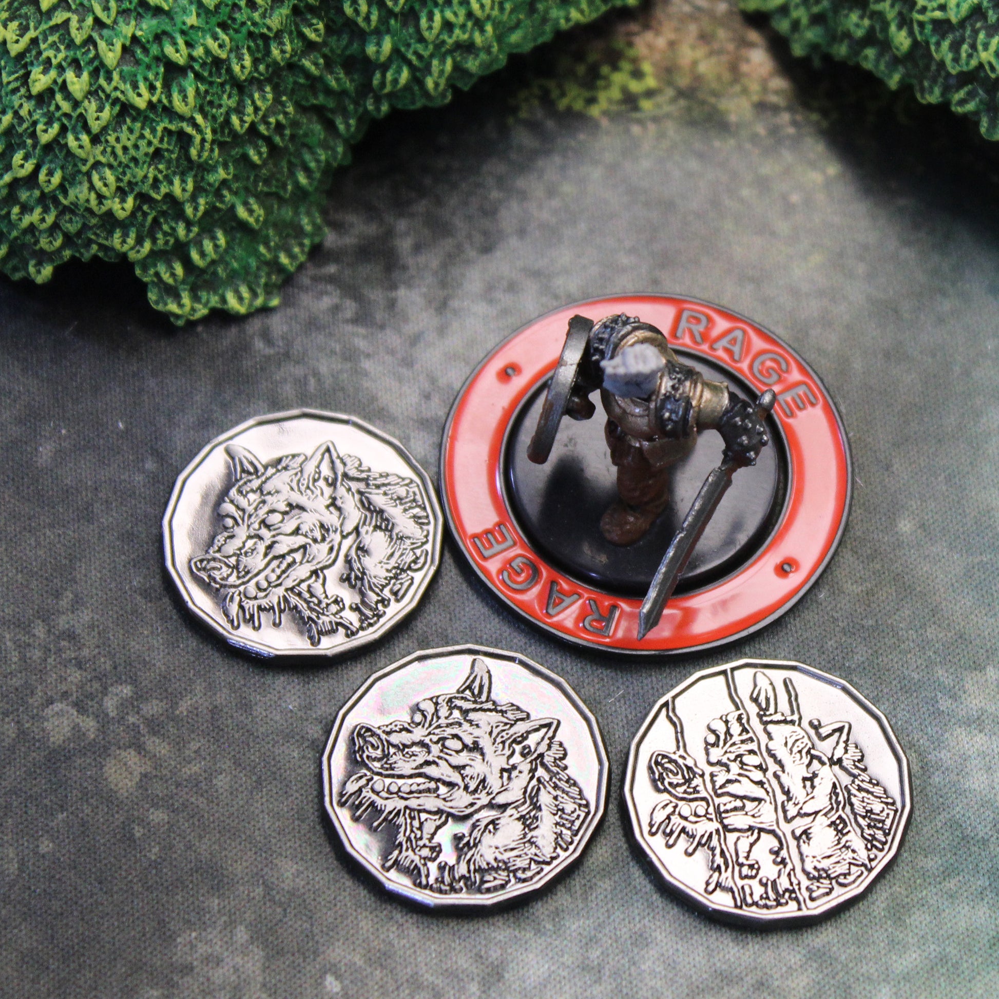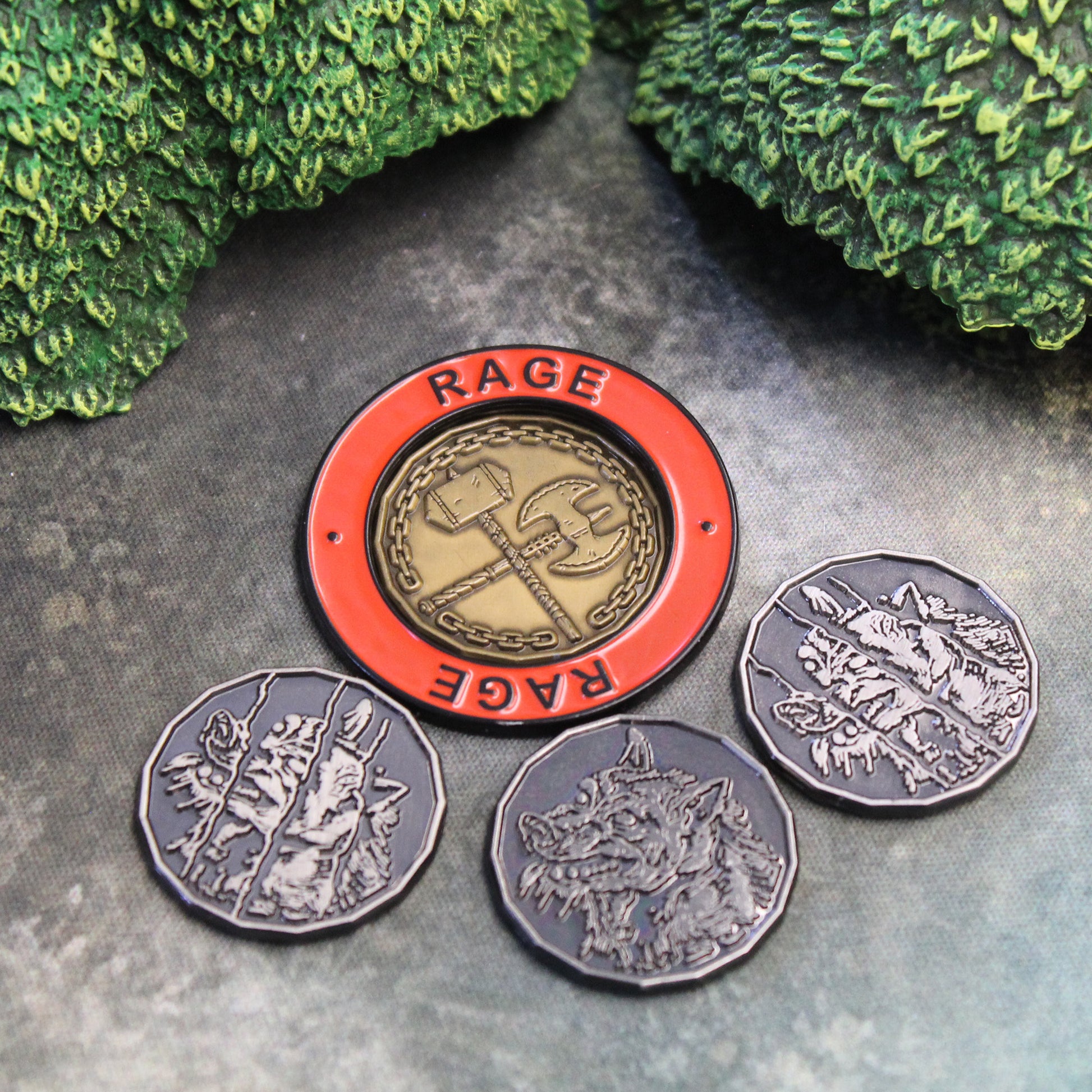 Coins and miniatures all-in-one! Track characters in your tabletop games with these distinctive engraved tokens. Our All Class set includes 12 coins - one of each of the barbarian, bard, cleric, druid, fighter, monk, paladin,